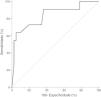 Em todos os neonatos estudados, a mediana e os intervalos de concentrações de BG são demonstrados na (figura 2). A concentração de BG foi significativamente maior no grupo com fungemia definida em comparação com os grupos sem fungemia e com suspeita de fungemia (p = 0,001 e p = 0,011, respectivamente) (figura 2). A sensibilidade e especificidade do ensaio de BG no nível 99 pg/mL foram 63,6% e 95,1% respectivamente. Os valores preditivos positivos (VPP) e negativos (VPN) foram 77,8% e 90,7% respectivamente, com precisão de 88,5%. A área na curva de operação do recebedor (ROC) foi 0,837 (IC de 95% [0,689‐0,985]) (p = 0,001) (figura 3).